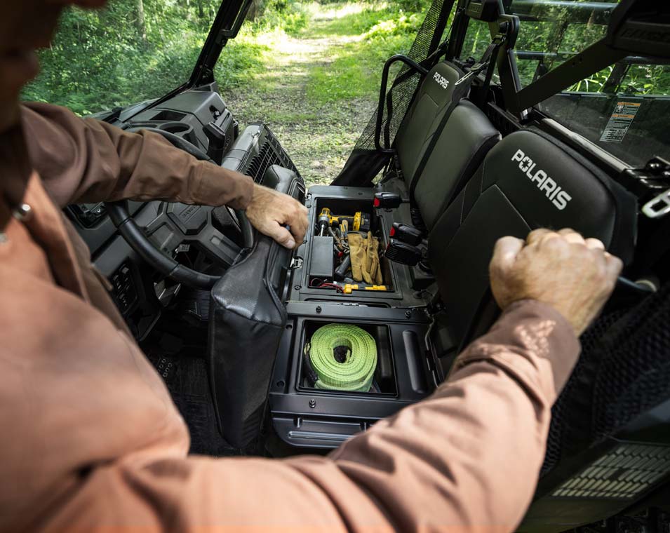 Take on a full day off road, with plush seating and integrated in-cab storage to stow your essentials.